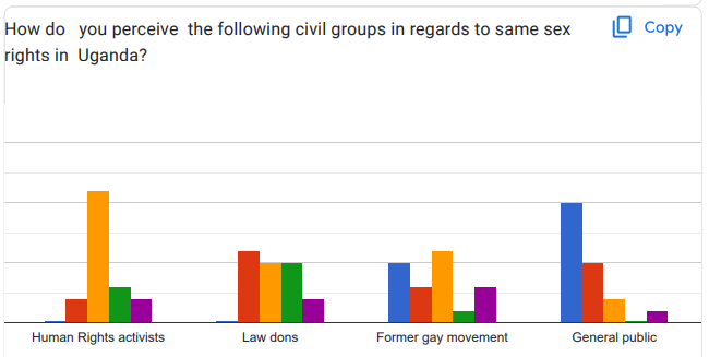 Civil groups' perceptions regarding same-sex rights in Uganda were addressed through our media strategy as well. We featured interviews and articles that showcased a diverse range of opinions from various civil groups. This approach aimed to provide a well-rounded perspective and encourage informed discussions about LGBTQ+ rights.